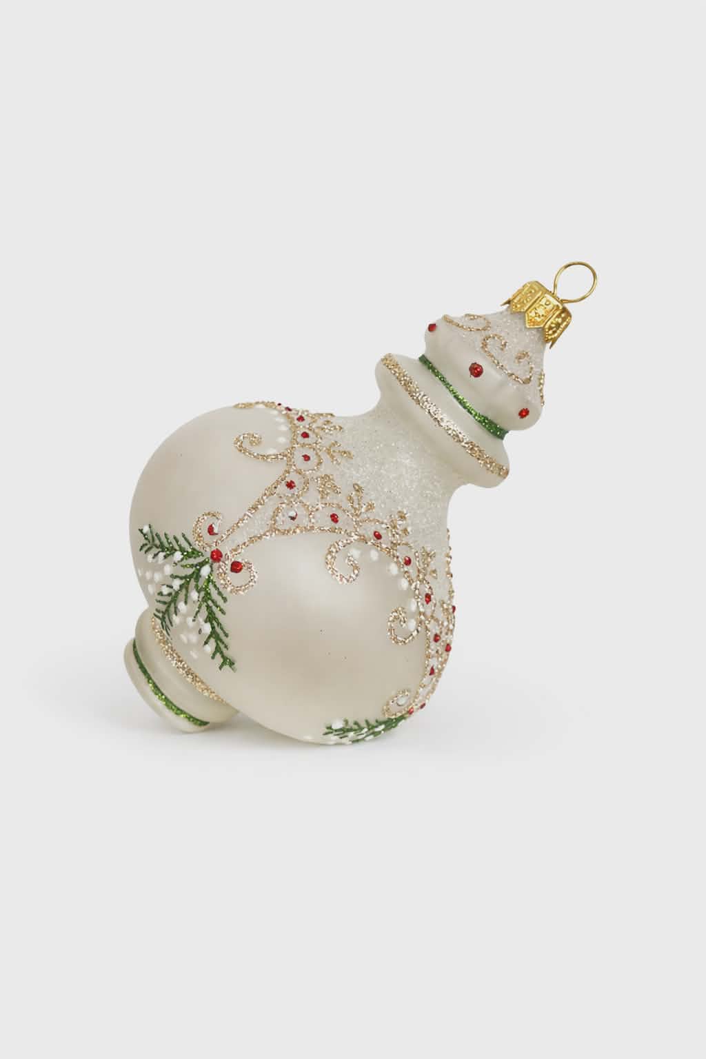 Bombka w białym kolorze, który będzie idealnym dodatkiem do wielu świątecznych aranżacji lub idealnym upominkiem.