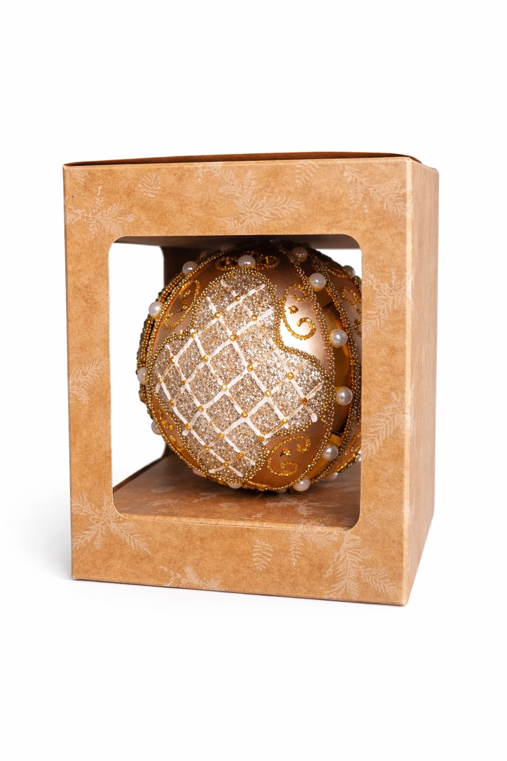 Bombka ma średnicę 10cm i posiada ręcznie zdobiony wzór w stylu glamour.