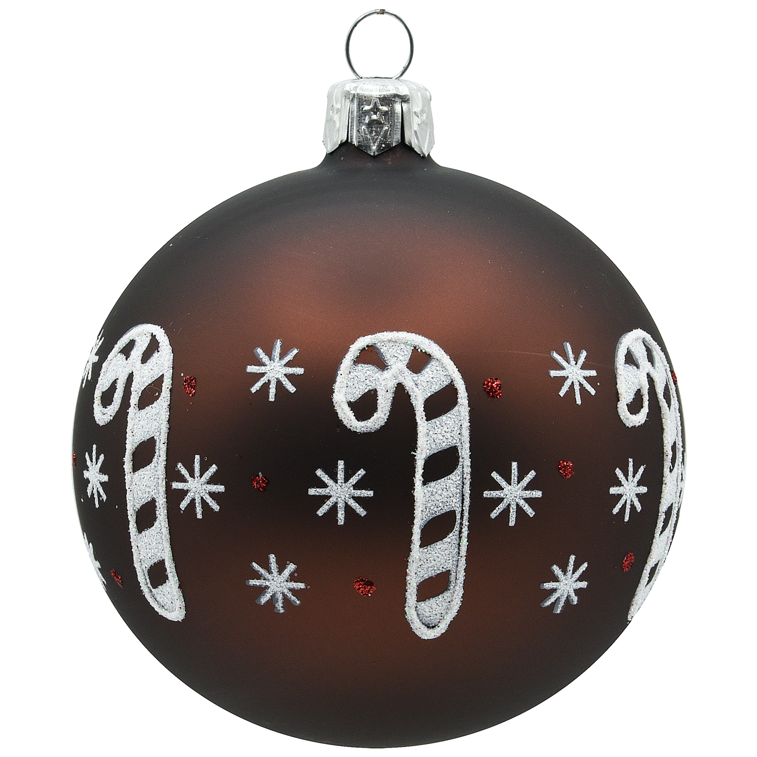 Każda bombka została recznie ozdobiona srebrnym brokatem oraz błyszczącymi koralikami.