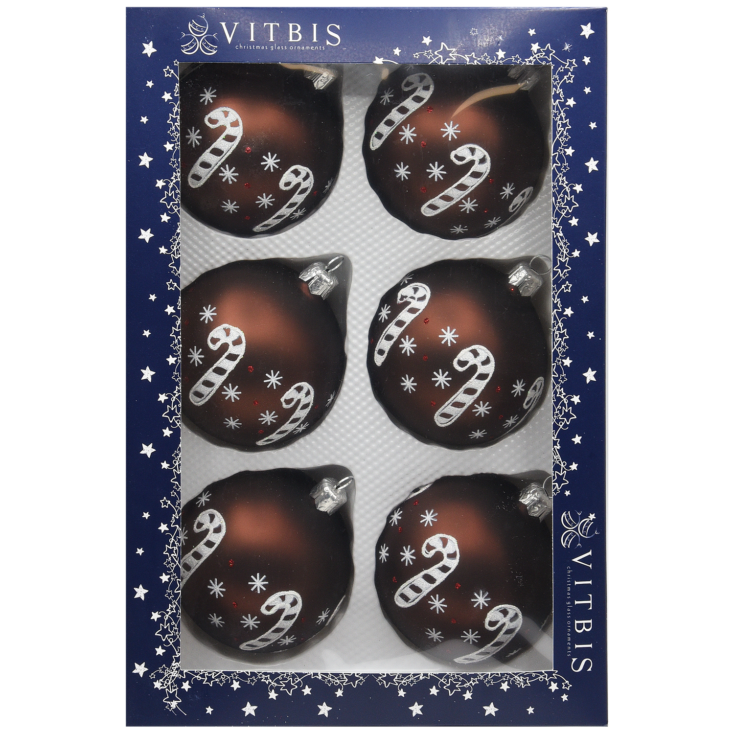 Zestaw składa się z 6 bombek w kolorze brązowym ze wzorem.