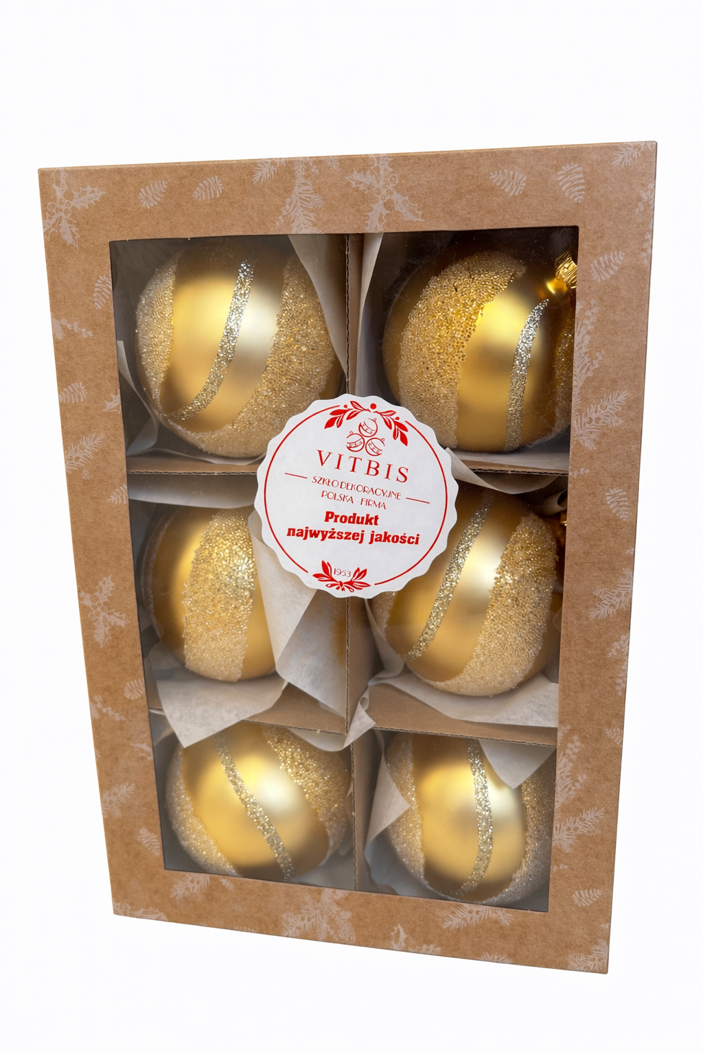 Prezentowany zestaw składa się z 6 bombek o średnicy 8cm.