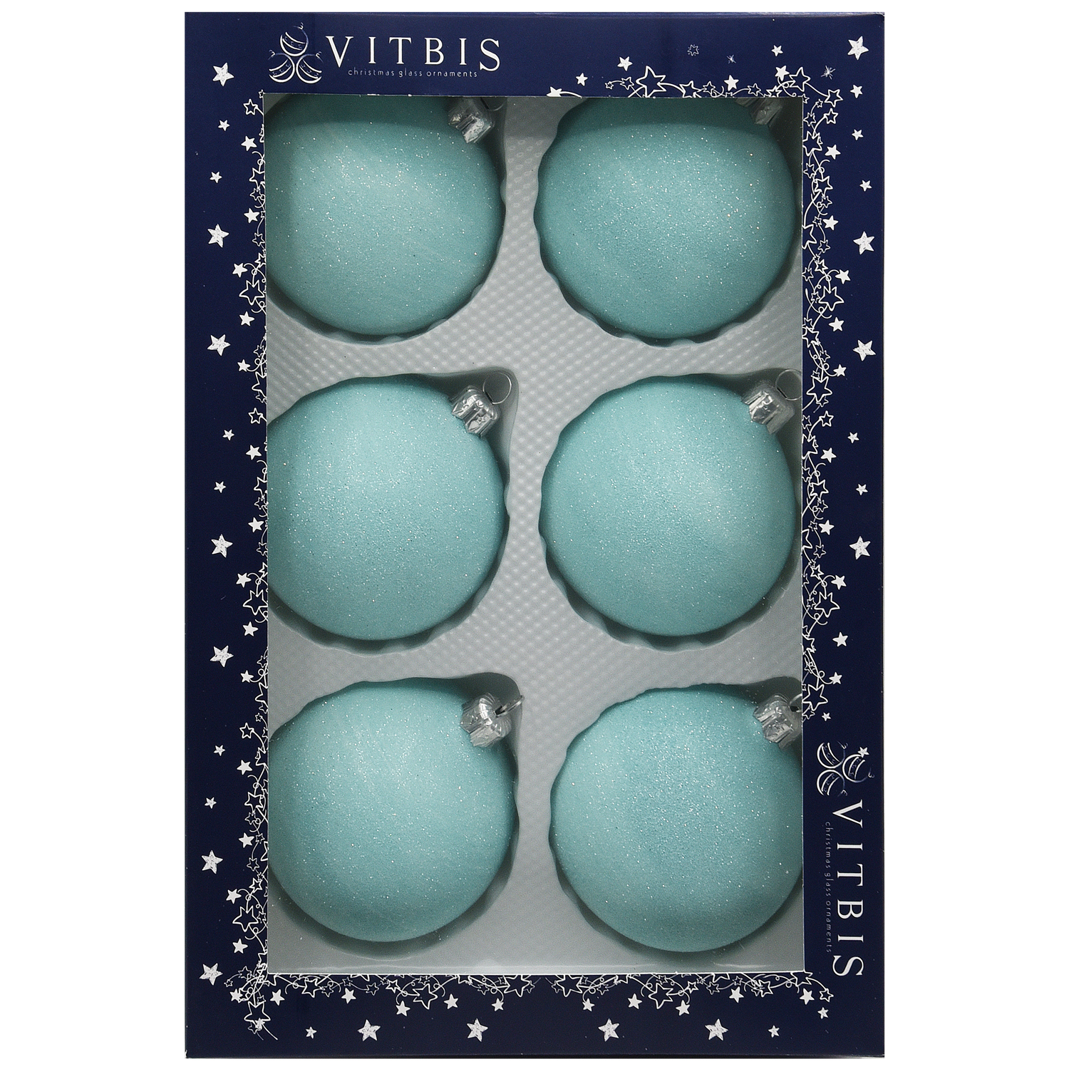 Bombki w tym zestawie posiadają wzory w kolorze niebieskim wykonane ręcznie przez artystów firmy Vitbis.