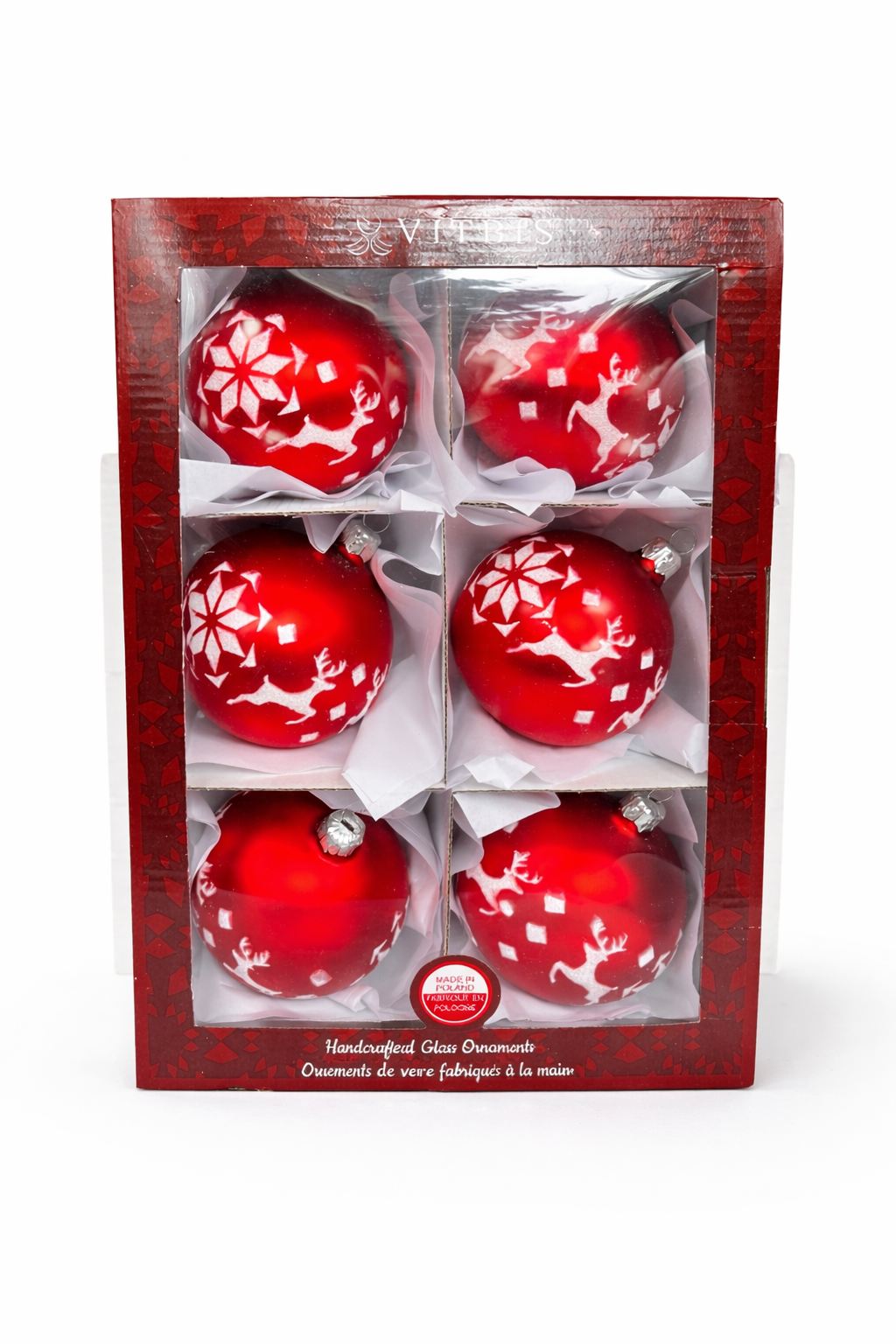 Zestaw składa się z 6 bombek czerwonych ze wzorem.