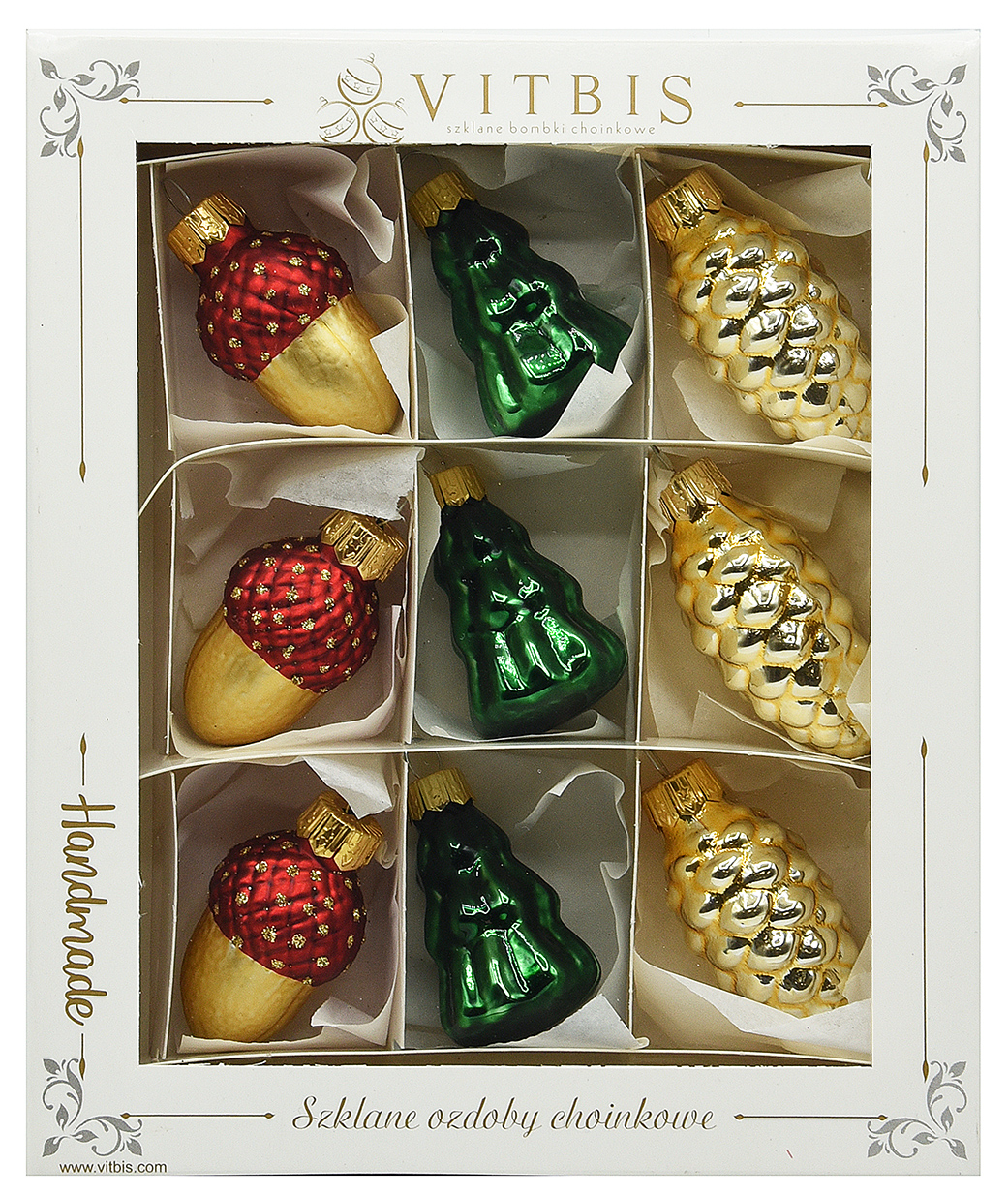 Bombki w tym zestawie posiadają wzory wykonane ręcznie przez artystów firmy Vitbis.